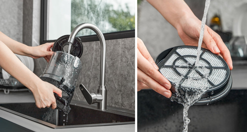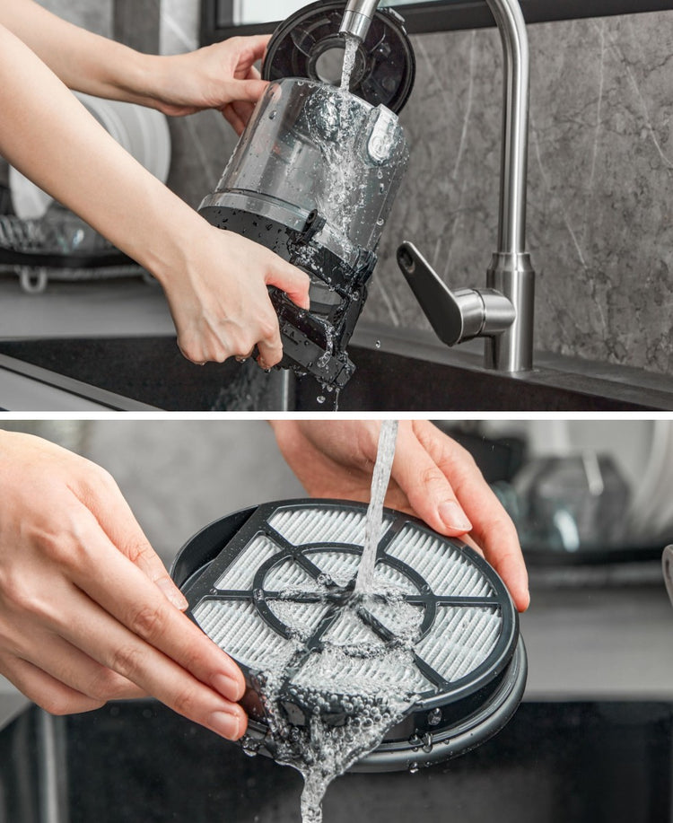 Equipped with a one-button press, the 1.5L dust cup provides an easy emptying after cleaning.