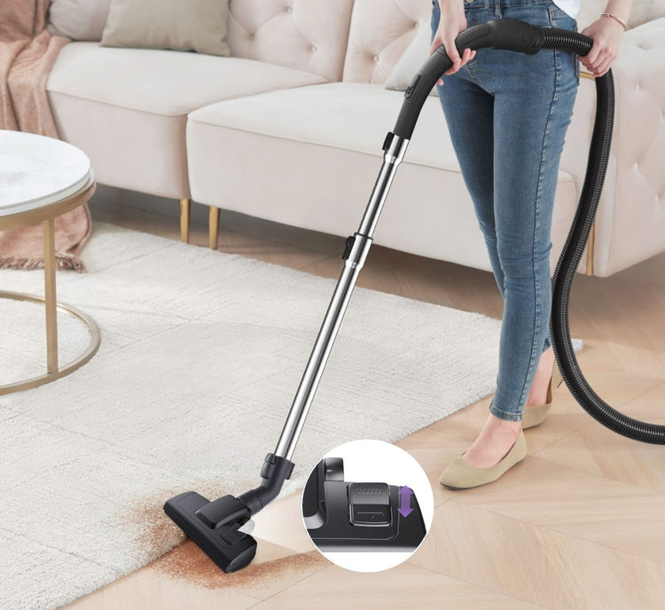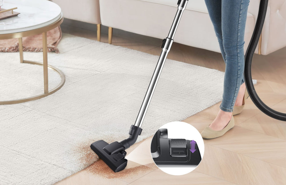 Effortlessly switch to the proper setting for carpets,rugs and hard floors with just one tread of switch.
